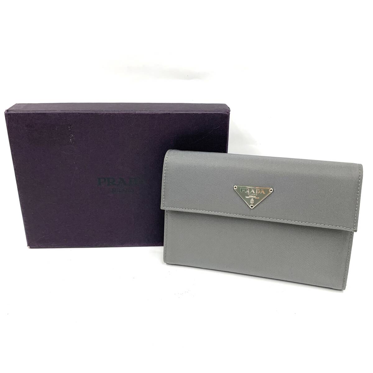 - D0916 美品!格安! PRADA プラダ トライアングルロゴ 三つ折り財布 ミドルウォレット テスート ナイロン グレー M510
