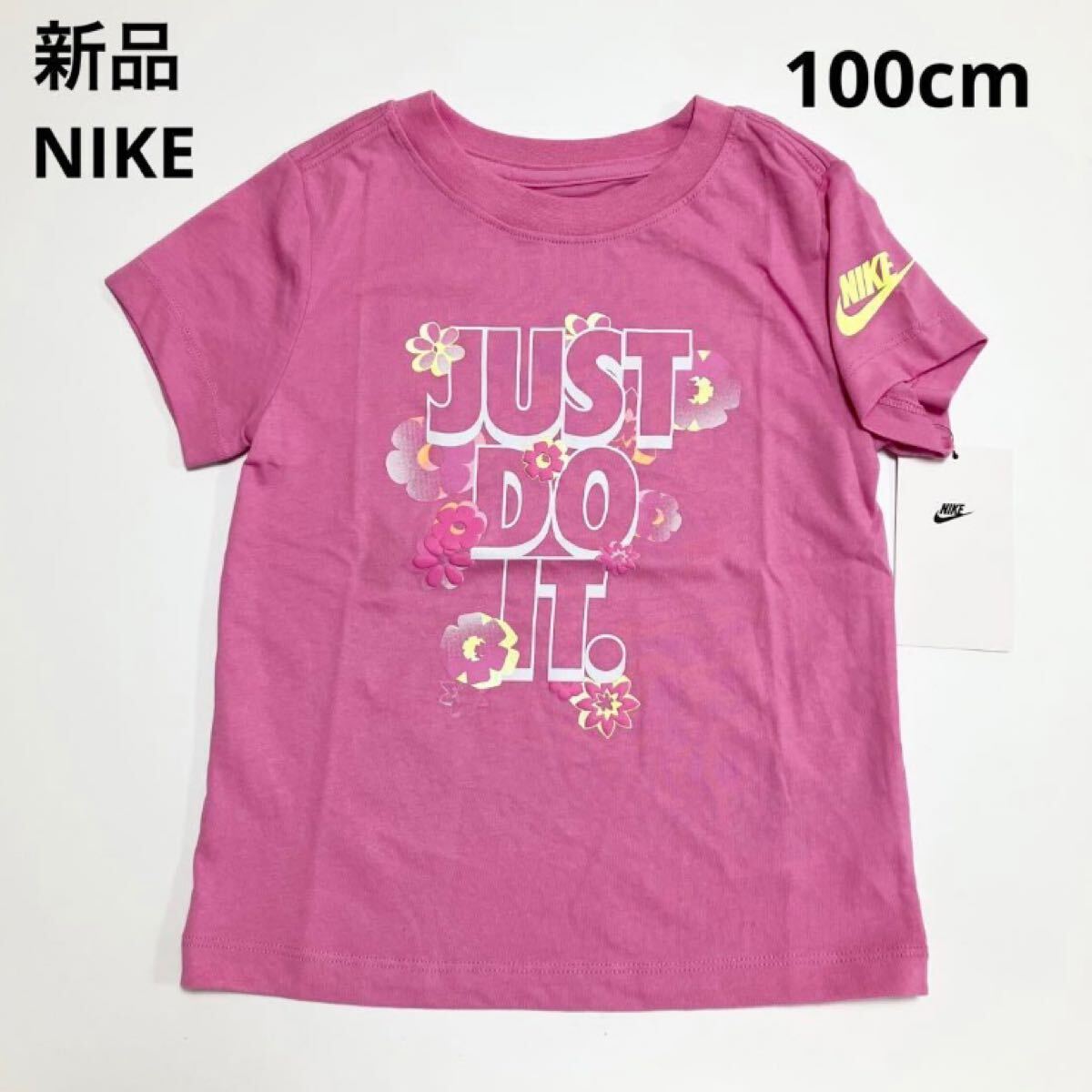 > D175 新品 NIKE ナイキ Tシャツ カットソー 半袖 キッズ 子供服 ピンク 女の子 花柄 100cm KD286