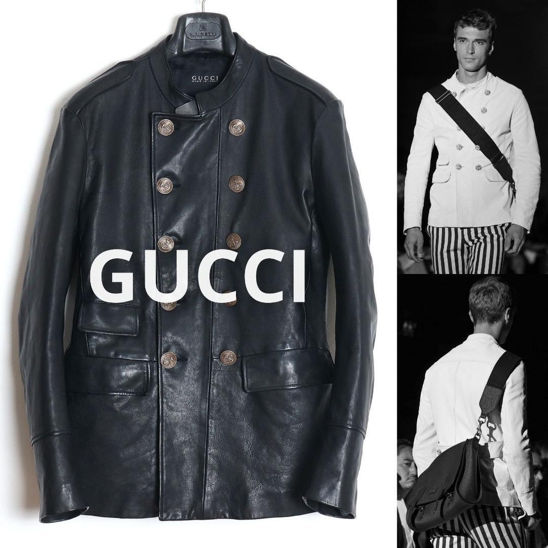 > GUCCI 15SS フリーダ期 レザージャケット 48 国内正規品ダブルブレスト ライダース ブルゾン ナポレオン ユーロワーク コルビジェFENDI出身