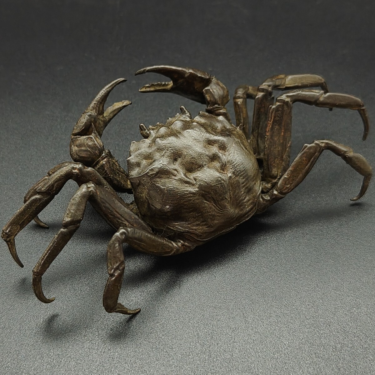 - 銅製置物 蟹 銘あり 雨宗宮作 銅製 インテリア置物 茶道具 銅蟹茶道置物