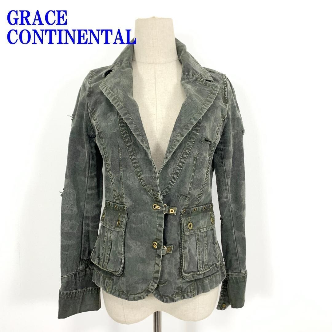 > グレースコンチネンタル ミリタリージャケット GRACE CONTINENTAL 迷彩 ダメージ加工 カーキ 綿 36 C2704