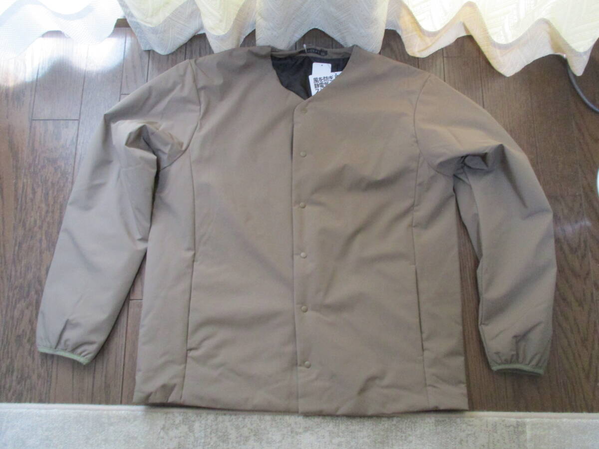 > こっこちーな 美濃屋 LL シンプルノーカラージャケット カーディガン 中綿 ベージュ はっ水 防風 調温