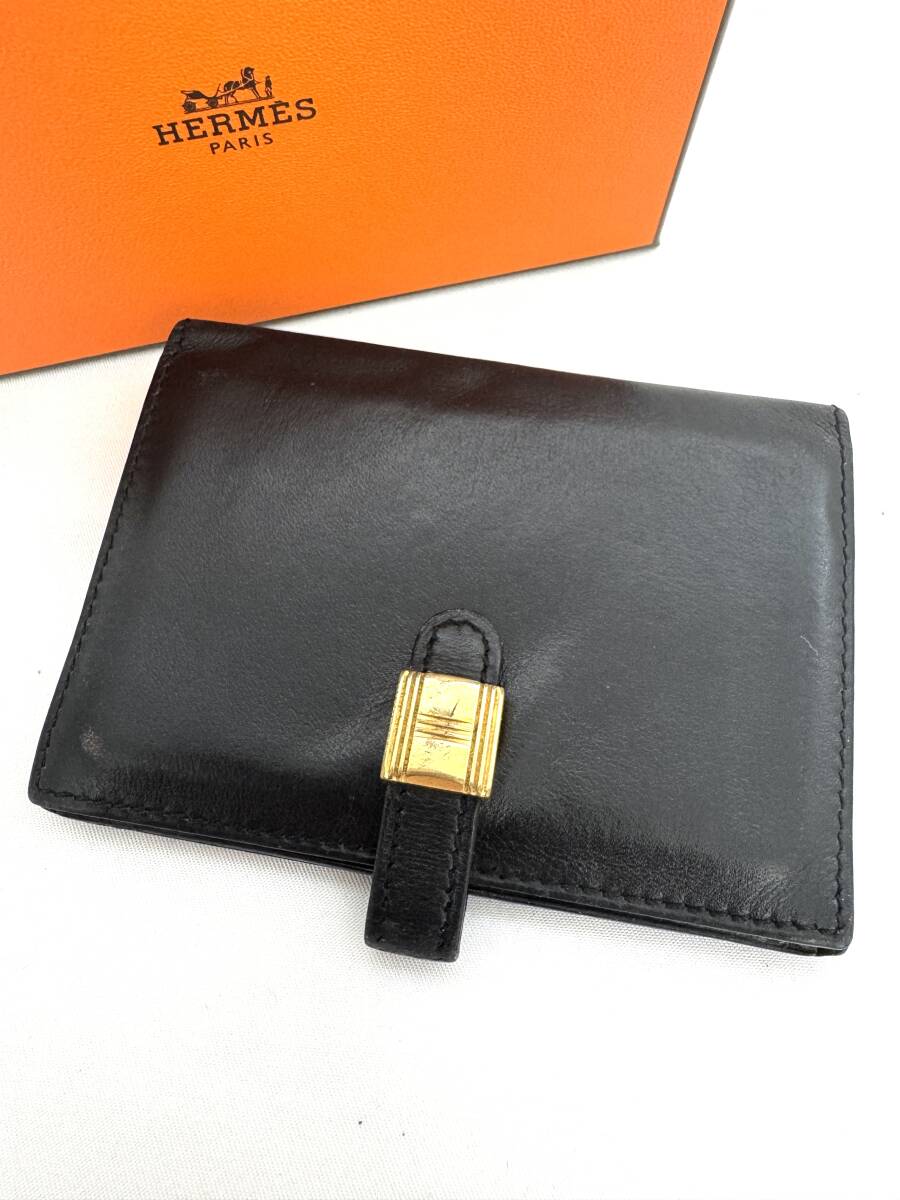 > 7E1805【本物保証】エルメス ソミュール ディアンヌ カードケース パスケース カデナ 金具 ゴールド レザー ブラック ○W刻印 HERMES