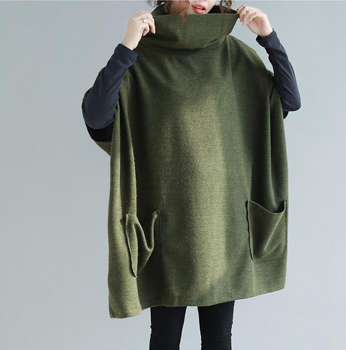- 大人気フリーサイズ 新品チョ型チュニックワンピ秋 ゆったり大きいサイズタートルネックがかわいいポン グリー お色選択可