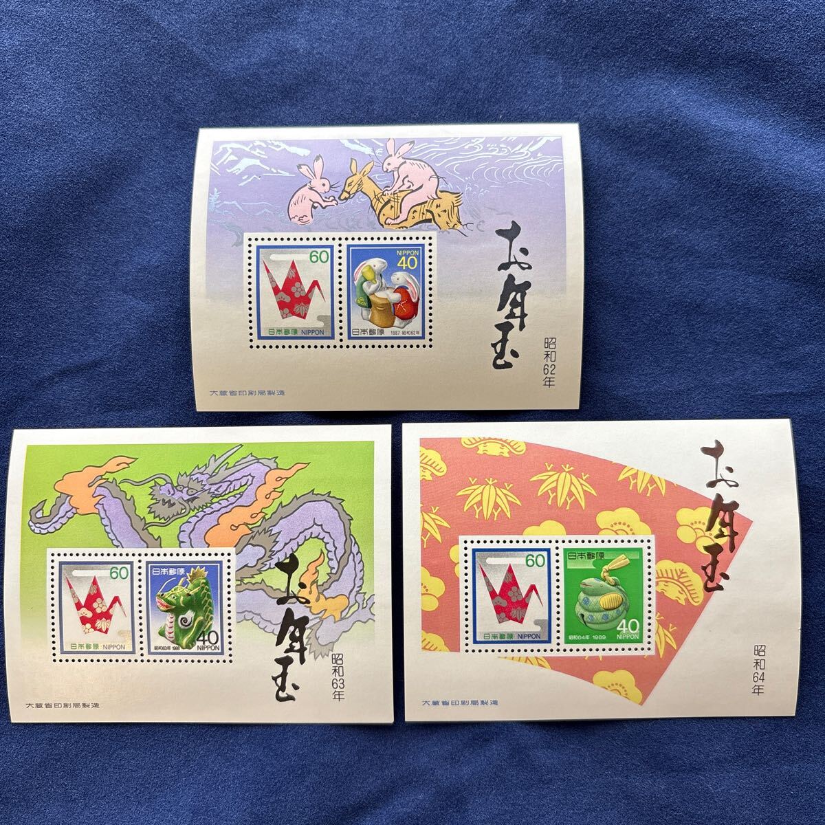 > お年玉切手【昭和62年~64年】うさぎの餅つき・倉敷はりこ・土鈴の蛇〔未使用 小型シート3枚〕1987年~1989年 年賀 日本郵便 Japan 送料無料