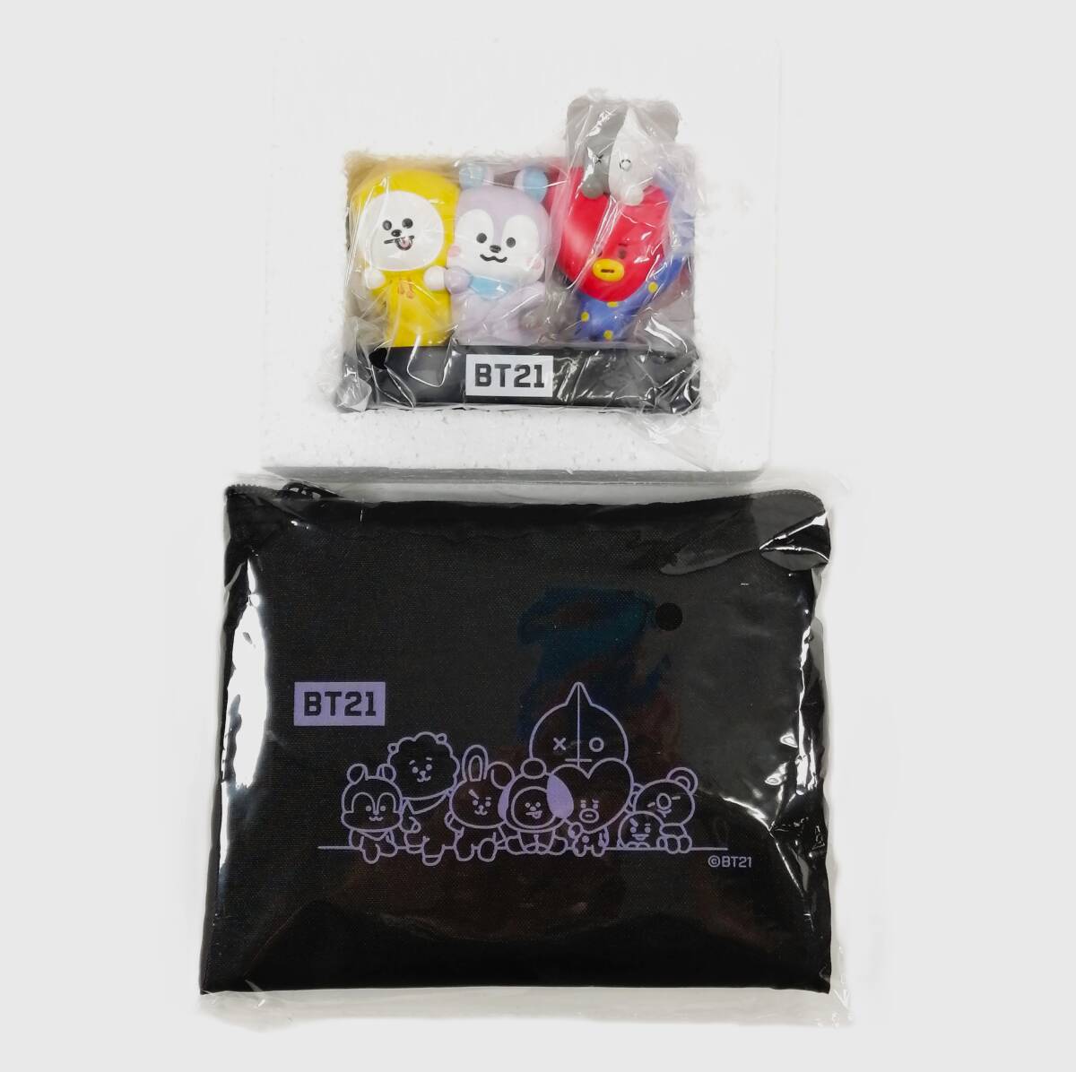 > 【新品】メンバーシップ特典 非売品 2種 / BT21 LINEFRIENDS フィギュア + 特製エコバッグ 黒 メンバーシッププログラム (#DXKJQ)