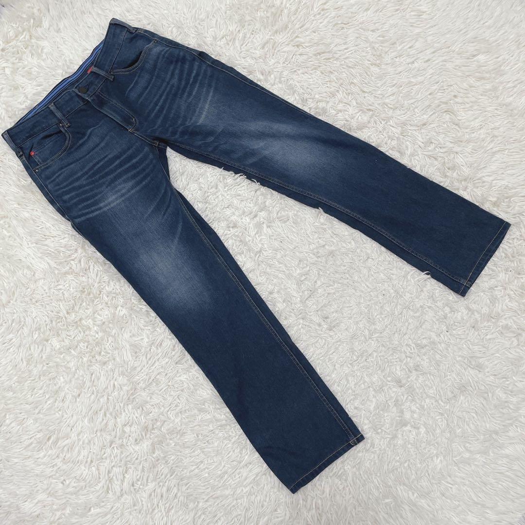 - 『TAPERED』 (L) ストレートデニムパンツ Gパン ストレッチ ヒゲ加工