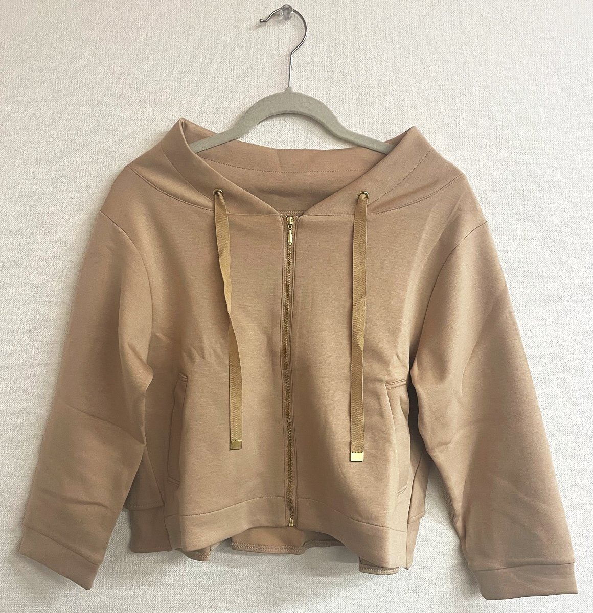 - レディース ジップアップ バックフリル ジャケット パーカー ベージュ