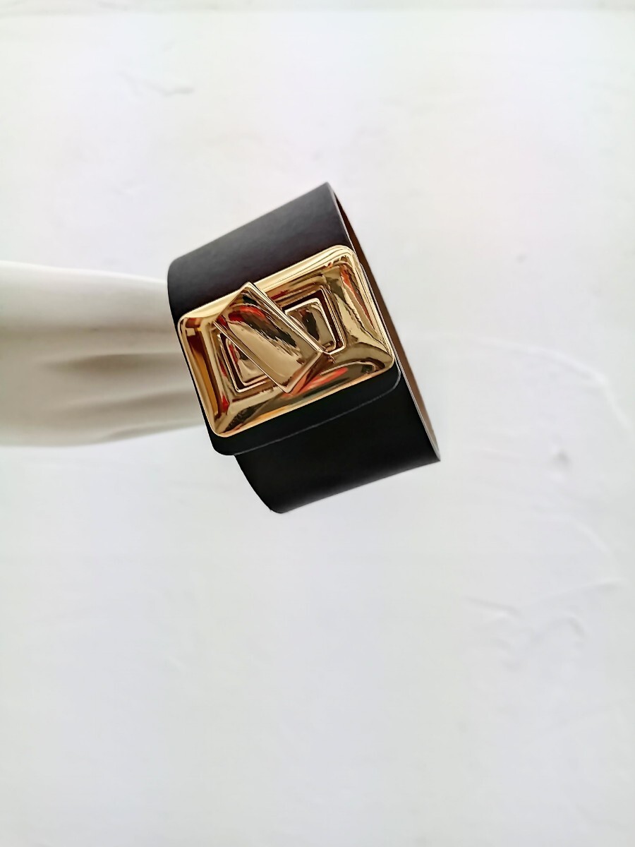 - ポルトガル製 Belcinto ベルチント ブレスレット ブレス バングル レザー 革 ハンドベルト ブラック ゴールド 黒 金具