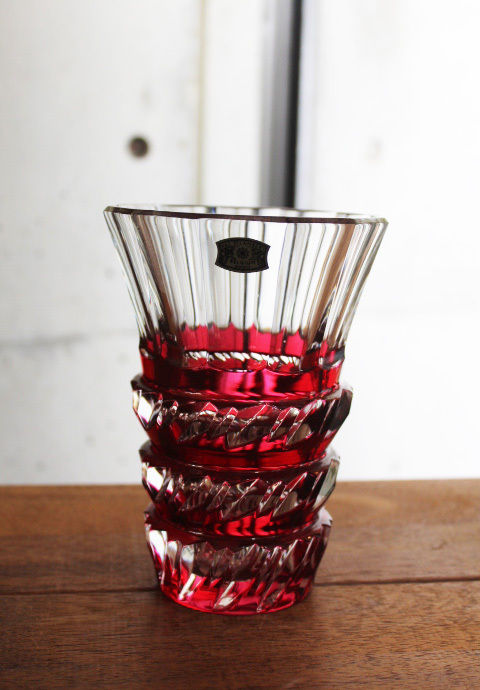 - ベルギー【ヴァルサンランベール】ルビー 色被せ 花瓶 フラワーベース