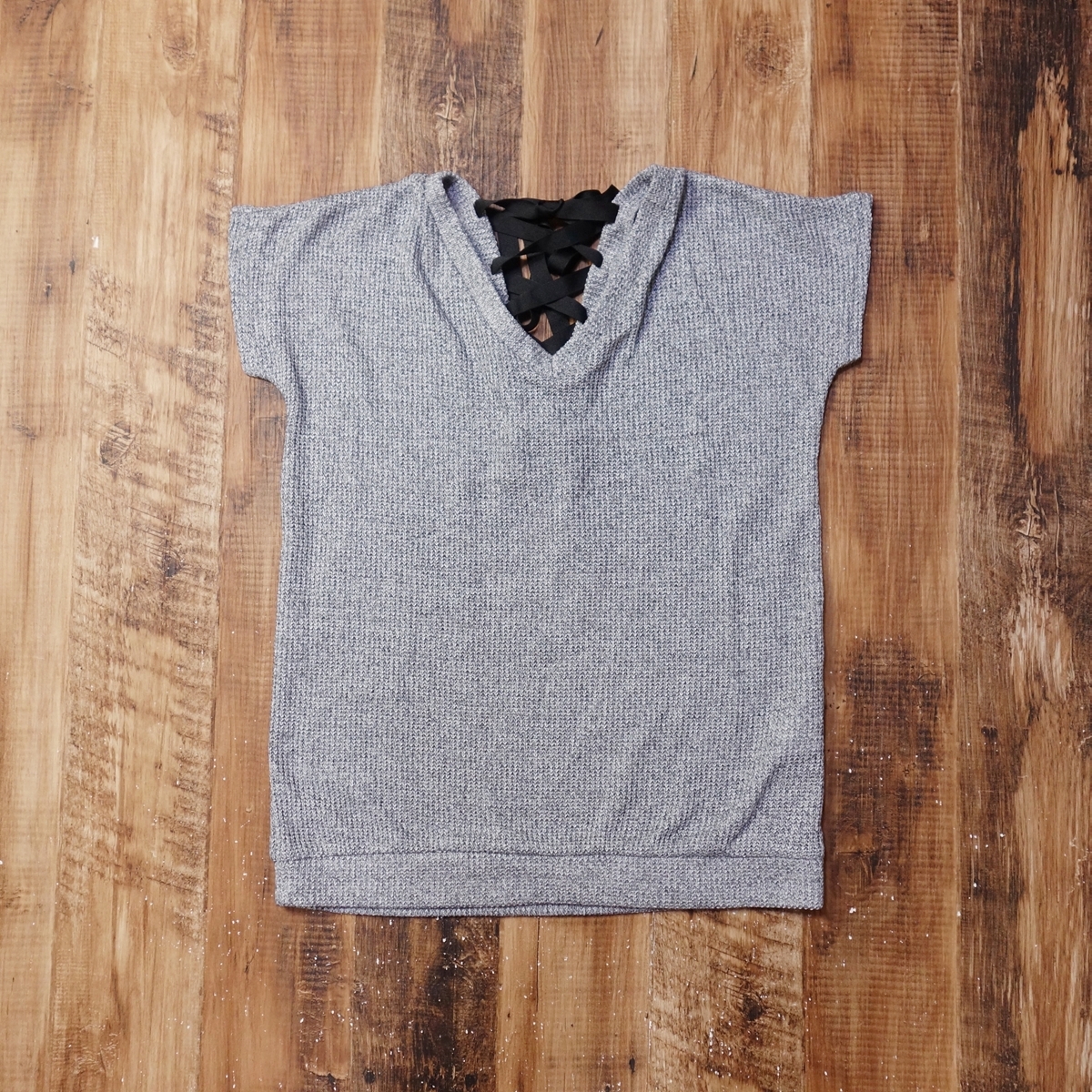 > 美品 ヴァンスエクスチェンジ VENCE EXCHANGE レースアップニットトップス レディース サマーニット ざっくり 春夏 Mサイズ グレー LH20