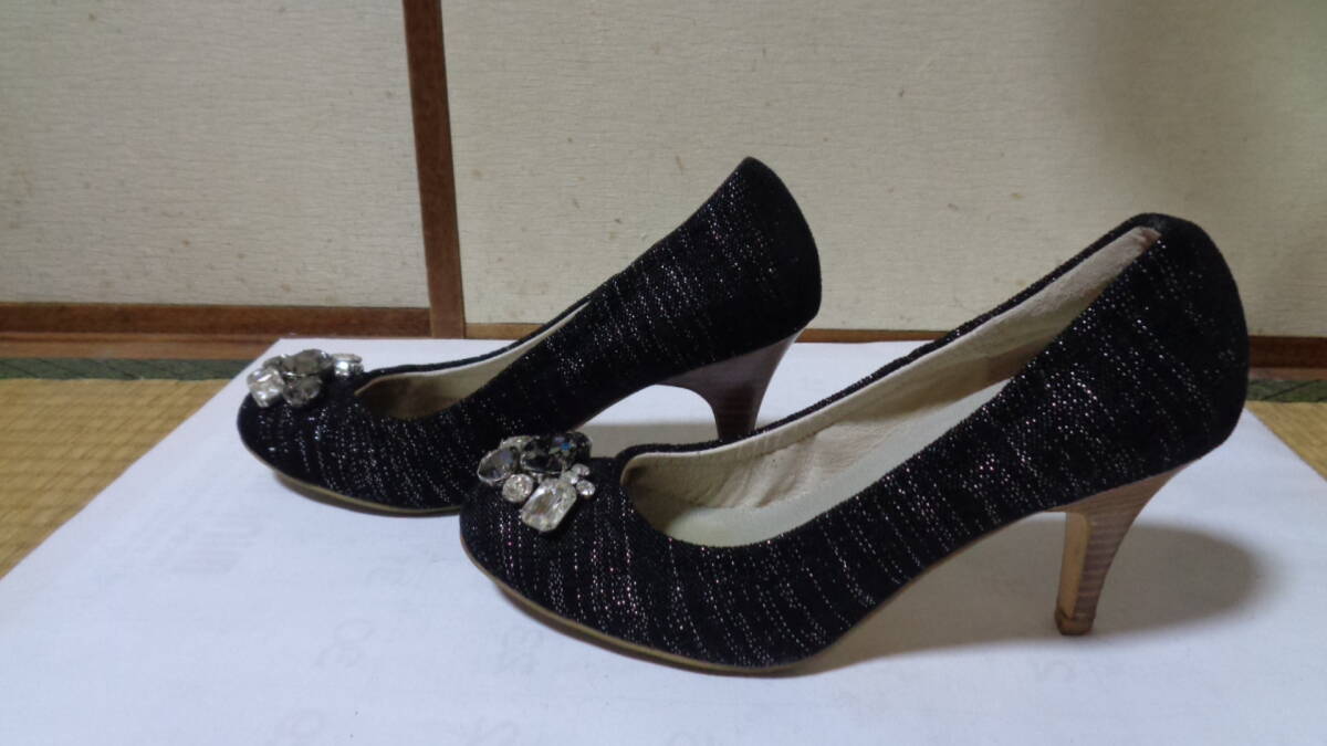- 送料込み ORiental Traffic ビジュー飾り ラメ入り素材 黒パンプス 大きいサイズ 41(25くらい)