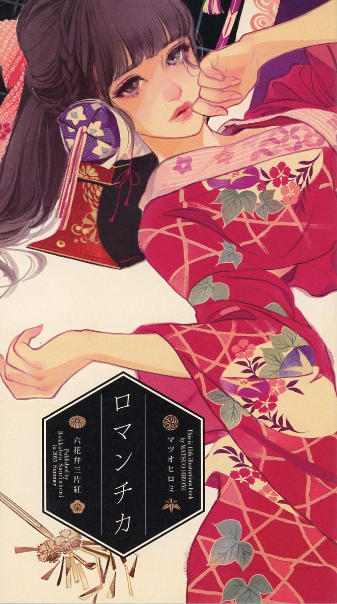 > り/六花弁三片紅(マツオヒロミ/『ロマンチカ』/大正・明治・昭和初期の着物テーマにしたオリジナルカラーイラスト集/和装美女/着物美女