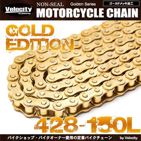 - バイクチェーン ドライブチェーン ノンシール 428-150L ゴールド