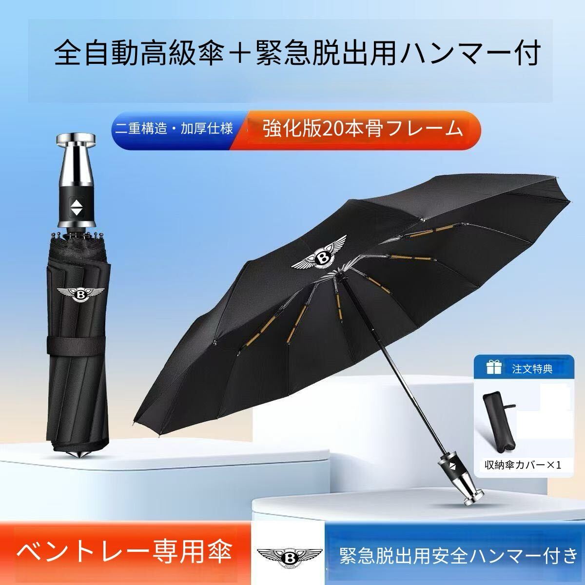 - 【ベントレー対応】晴雨兼用 全自動高級折りたたみ傘 安全ハンマー付き 大判サイズ ビジネス用傘 20本骨 耐風 強化仕様 3色 コンパクト