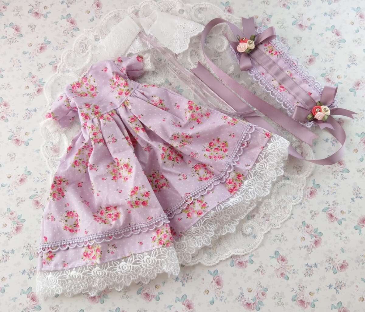 - *幼SD等に 1/6サイズ お洋服 OF ワンピース ドレス セット*【Lilac Rose】