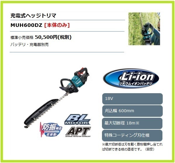 - マキタ 600mm 18V 充電式ヘッジトリマ MUH600DZ (本体のみ) 【バッテリ・充電器別売】 ■安心のマキタ純正/新品/未使用■