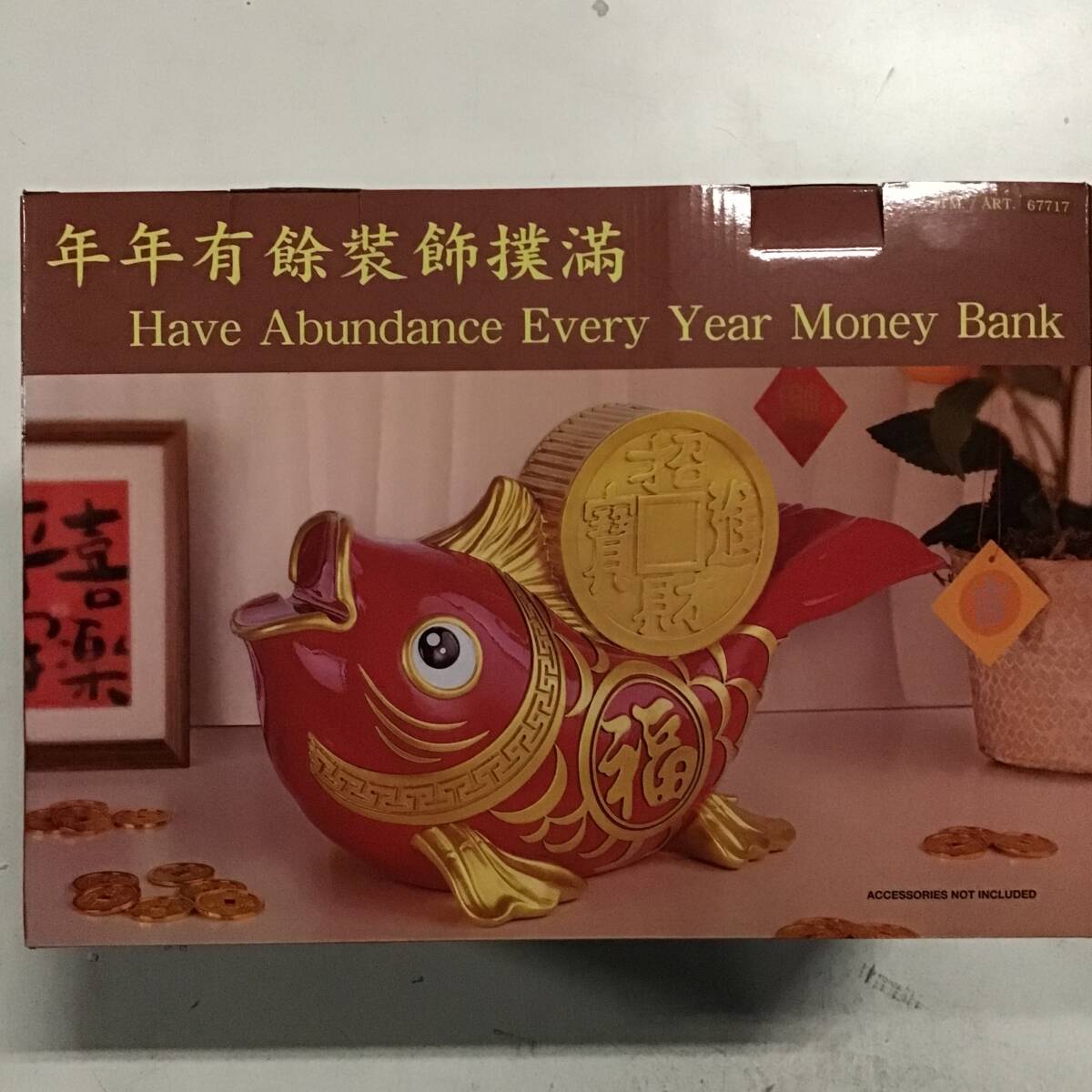 - 《 H 270 》★新品未使用★旧正月 魚型 貯金箱 Have Abundance EverYear Money Bank 手書き 縁起物 コストコ仕入れ 定価4998