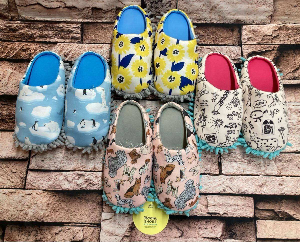 - 送料無料!可愛いファンシー柄!足裏モップ付きルームシューズA柄(画像から)1足