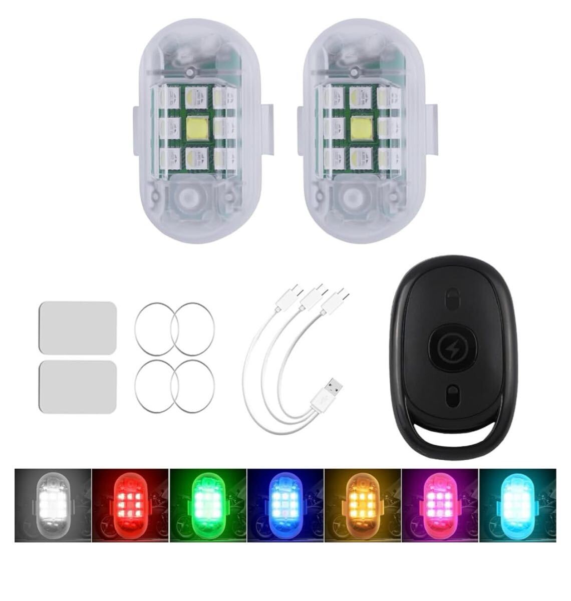 - LED ストロボライト 爆光 7色変化 フラッシュライト USB充電 振動感応 点滅 リモコン付き 配線不要 取付簡単 警告灯 防水 汎用 車 ドローン