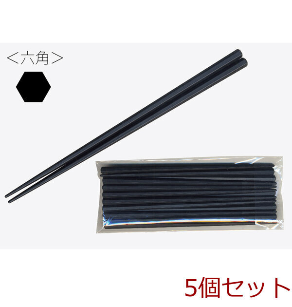 - 業務用SPS製 リユース箸 23cm 六角黒 10膳入 5セット