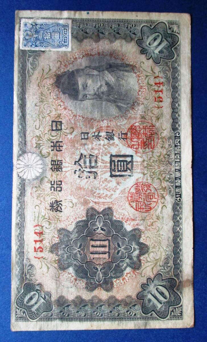 - 日本紙幣 改正不換紙幣10円 3次10円証紙付き SS83 画像参照してください。