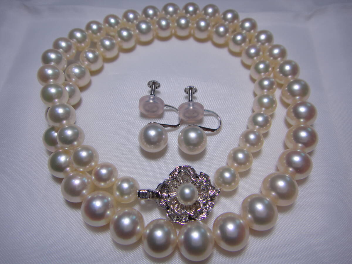- アコヤ真珠 本真珠 花珠級 ネックレス WGK14イヤリング付 ツヤテリ最強 約6.5~8.2㎜玉 約43㎝ 田崎真珠? ヴィンテージ Y665