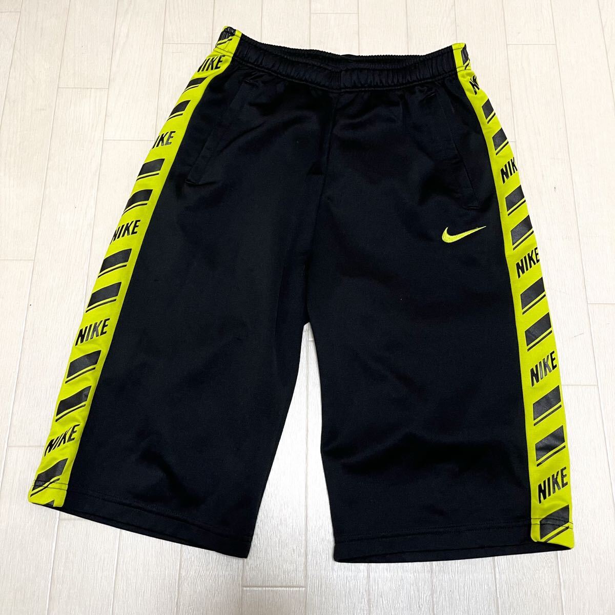 > 和746★① NIKE ナイキ ジャージ ハーフパンツ ボトムス サイドロゴ スポーツウェア L ブラック ライムグリーン メンズ