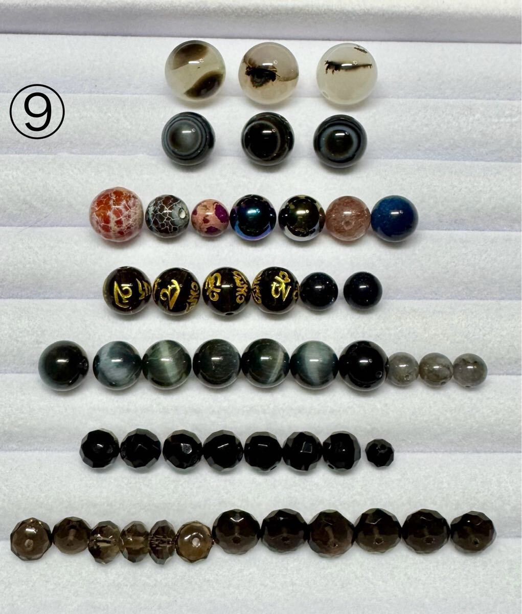 - ◆ 天然石 ビーズ ブラック系セット ⑨ デンドリック アゲート 天眼石 スモーキークォーツ 水晶 MIX set☆。.:*・゜