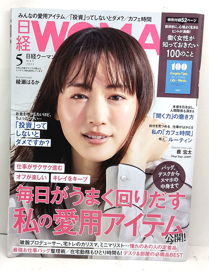 > ◆日経WOMAN「ウーマン」2022年5月号 No.496 毎日がうまく回りだす私の愛用アイテム公開! 表紙:綾瀬はるか ◆日経BP