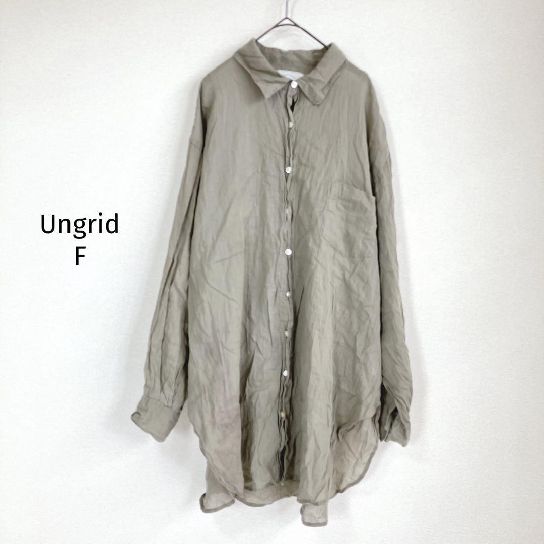 - アングリッド 麻混 シャツワンピース 膝丈 羽織り【F】リネン混 薄手 カーキ