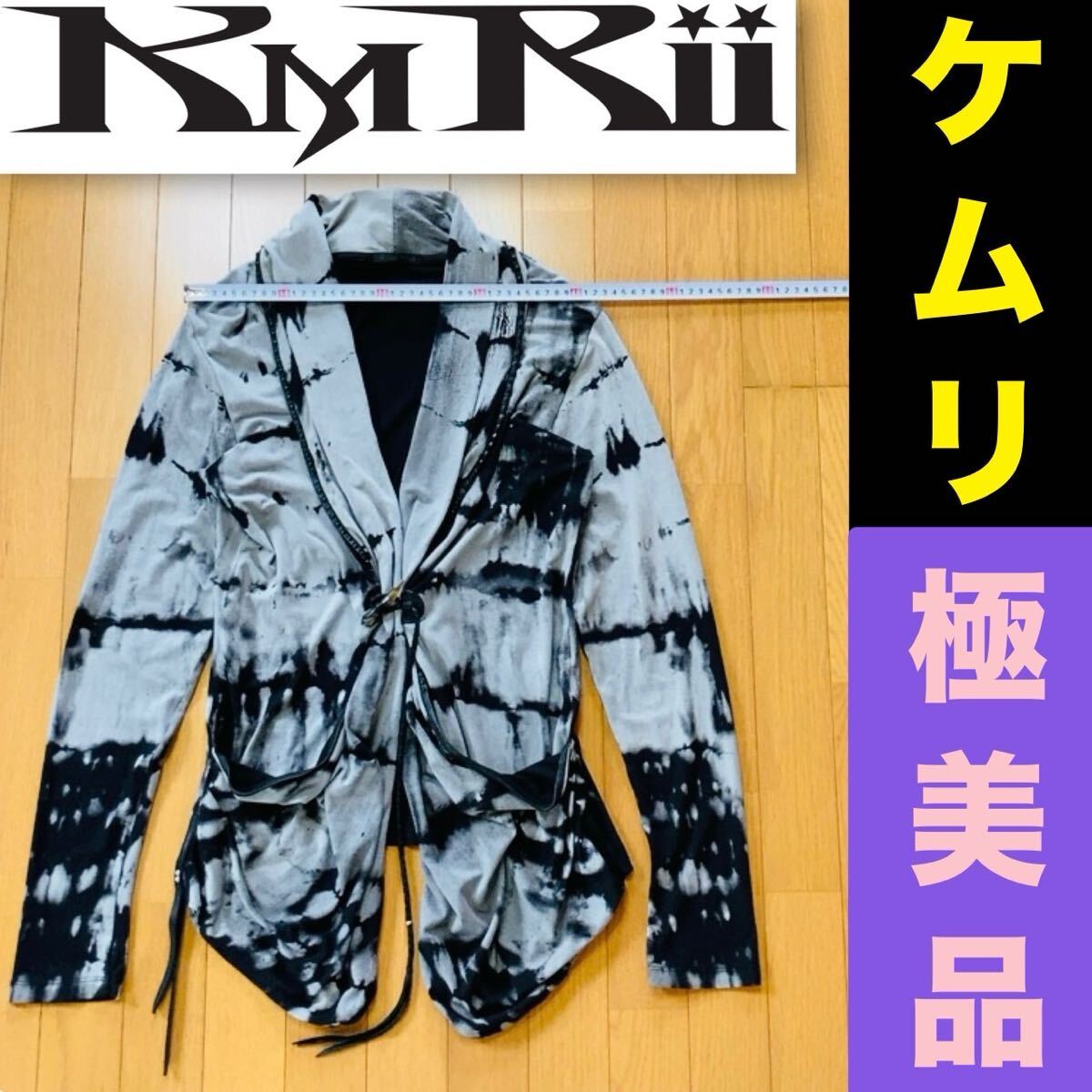 > 新品 KMRii レザー スタッズ 変形デザイン カーディガン 2 天然石 ケムリ ガウン コート M ブリーチ タイダイ 革 leather studs 黒 Y2K 00s
