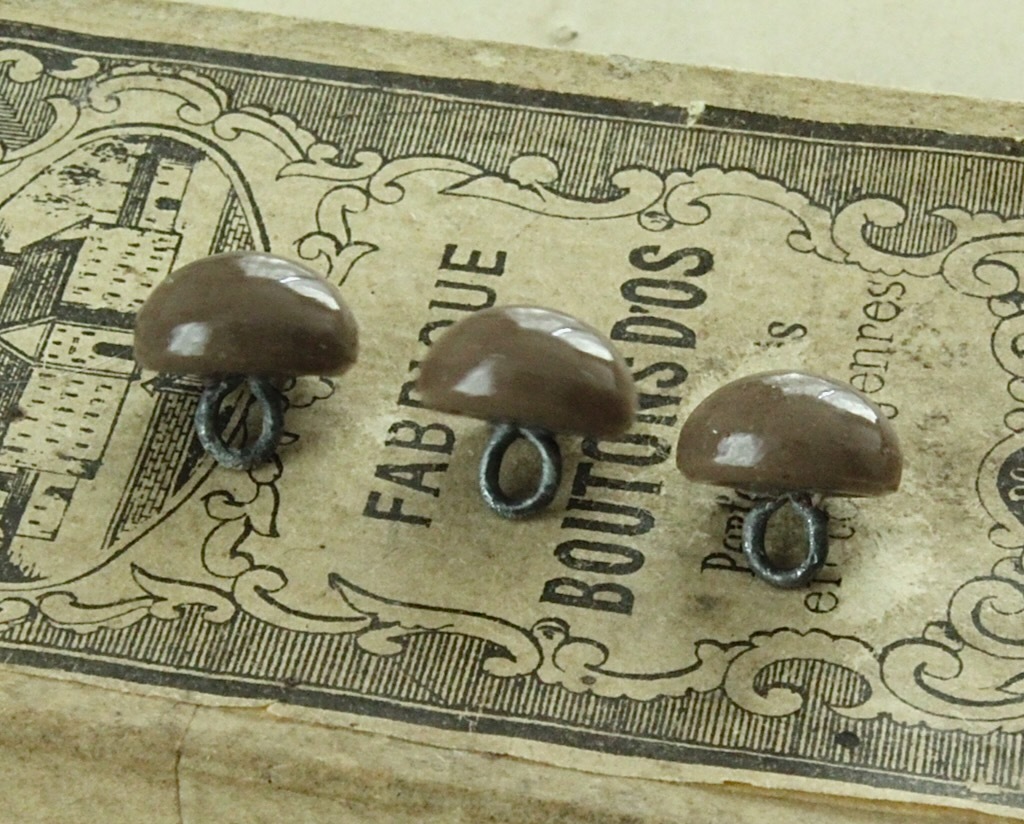 - 即決 ガラスボタン 3個 φ10mm キノコ型 ブラウン シュー フランス輸入 ヴィンテージ b