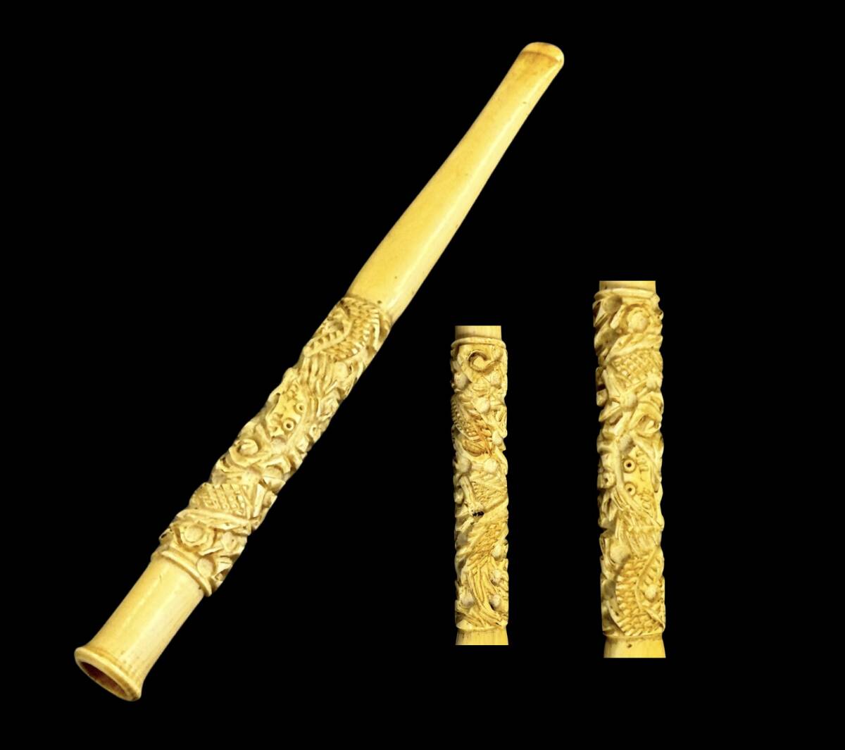 - 【偲】煙管 天然白材 キセル パイプ 細彫り 喫煙具 重約13.76g 長約15cm t-77