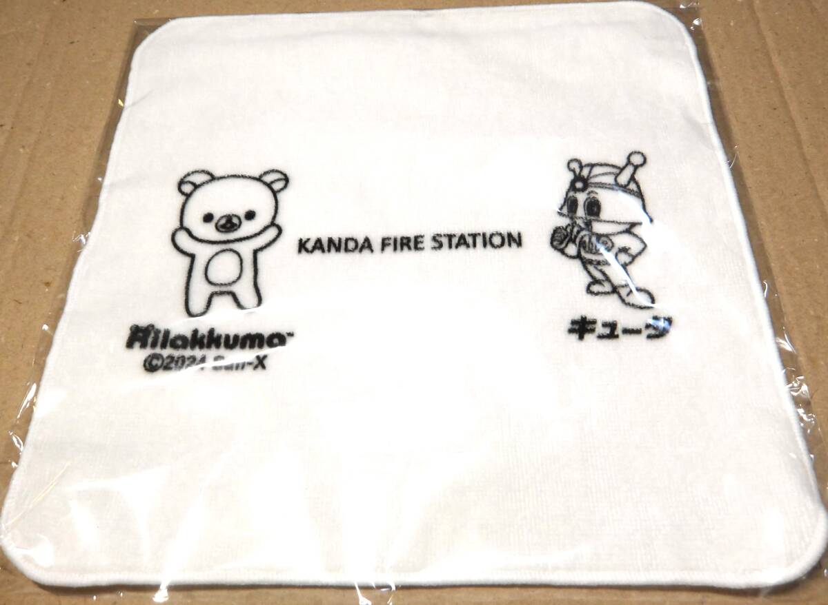 - セール!★リラックマ×キュータ タオルハンカチ ハンドタオル 白 神田消防署 非売品