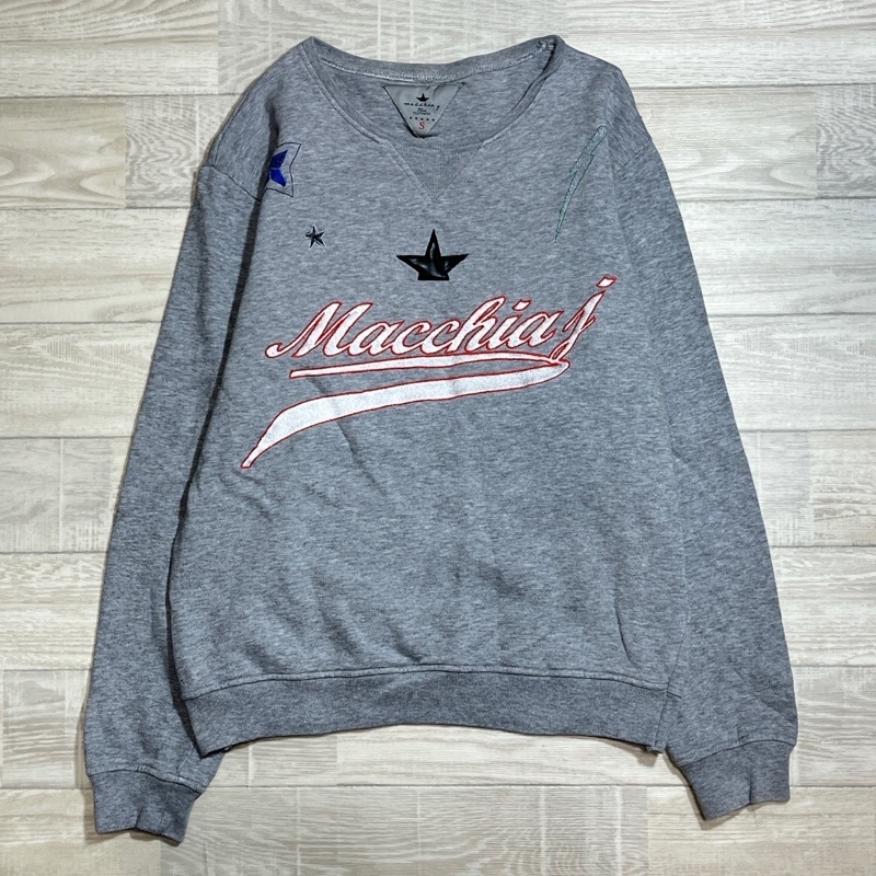 - Macchia.J/マッキアジェイ/イタリア製/スター刺繍/クルーネックスウェットシャツ/V字ガゼット