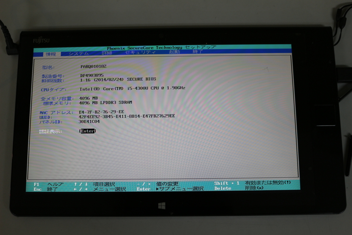 - ジャンク品タブレット 富士通 ARROWS Tab Q704/PV FARQ01018Z i5 メモリ4GB SSD128GB 12.5inch カメラ内蔵 OS無 起動確認済 代引き可
