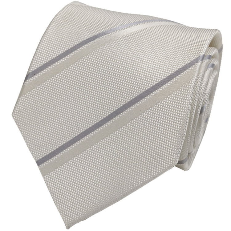 - フォーマルネクタイ 白×グレー ストライプ シルク100% テフロン加工 礼装 白 ネクタイ 結婚式 披露宴 メール便可 FNCR-WH03