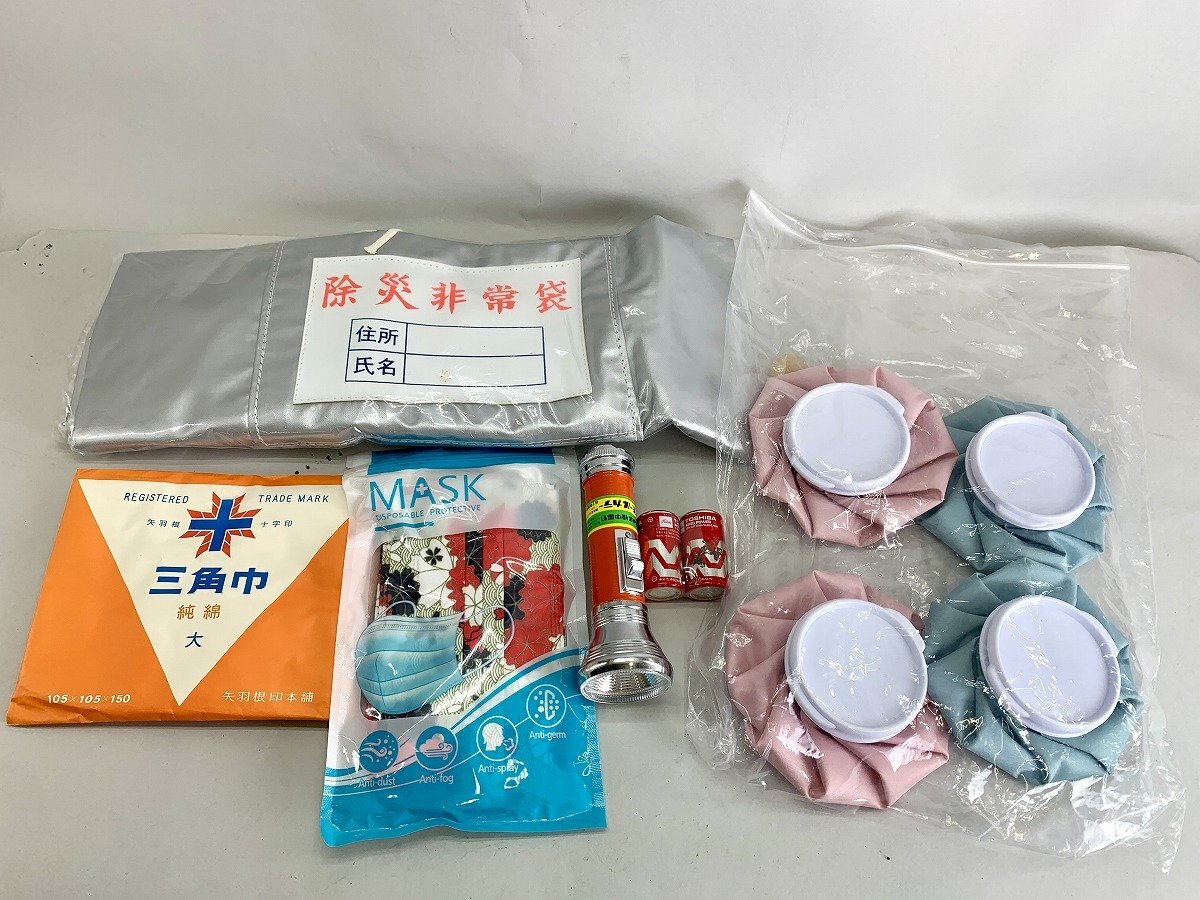 - 未使用自宅保管品 日用品 レトロ ナショナル 懐中電灯 FF-211CN スモールカラー 三角巾 矢羽根十字印 非常袋等 まとめ [03-6234