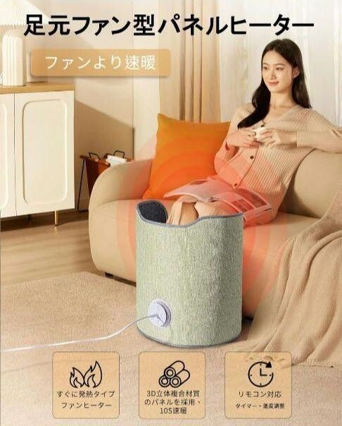 - 最終価格! パネルヒーター 熱風 足元ヒーター ラウンド型 リモコン付き 3段階温度調節 10秒速熱 省エネ タイマー 45度以上傾斜自動OFF