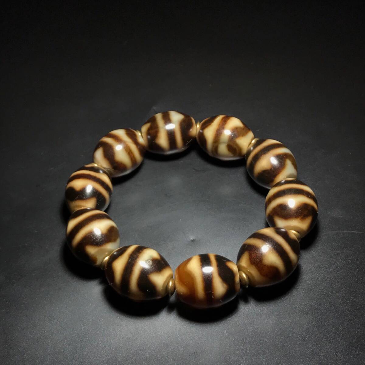 - 蔵友旧蔵出 瑪瑙製 細密彫 黑金達洛雙虎牙天珠手串 根付裝身具 希少珍品 賞物 中国時代美術品