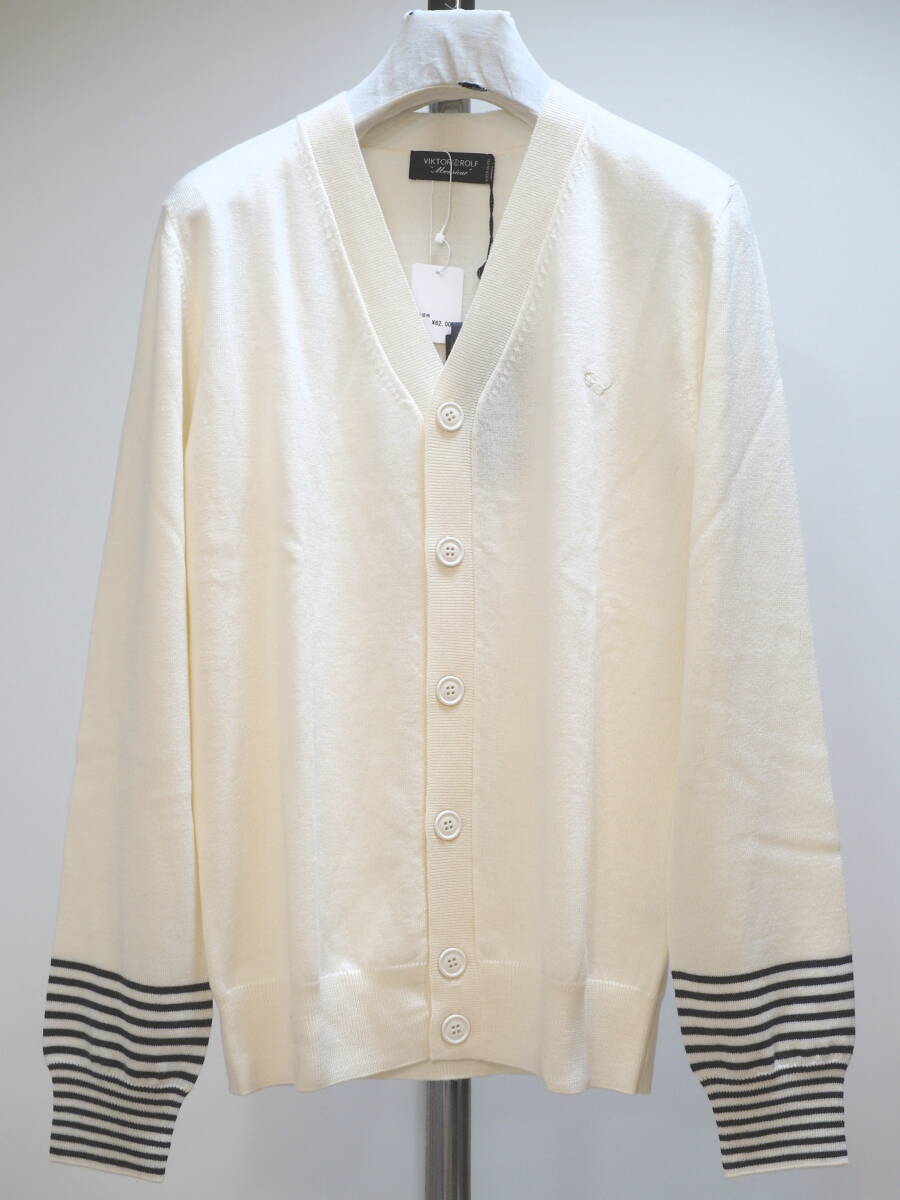 - 未使用品 定価68200円 VIKTOR&ROLF Monsieur ヴィクター&ロルフ 13AW袖ボーダーニットカーディガンM白×黒 Italy製 V&R