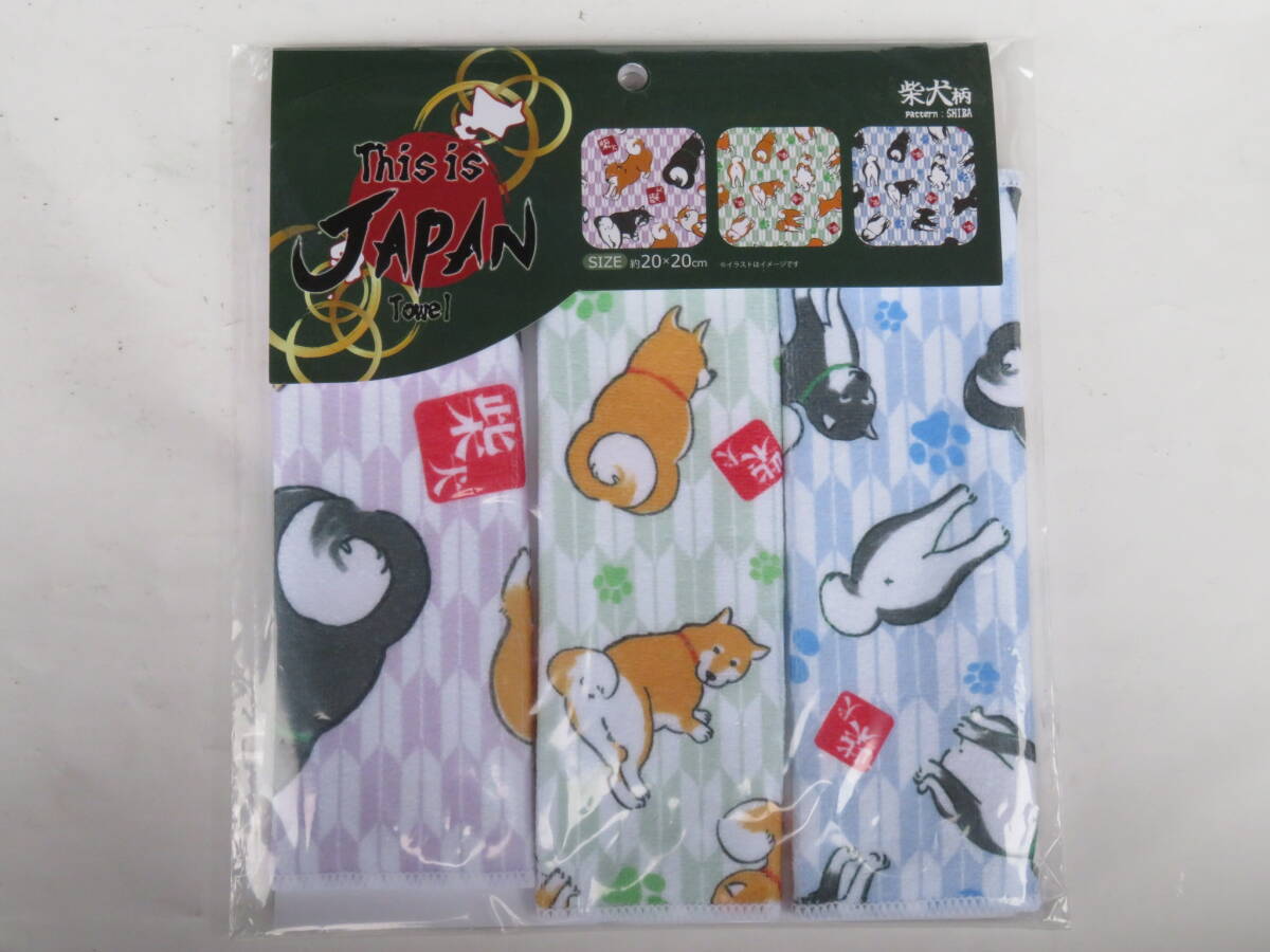 - ★新品★ 柴犬柄ハンドタオル 3枚セット 20X20cm いぬ 犬