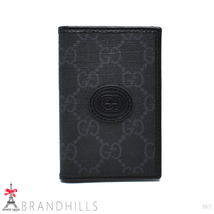 > グッチ カードケース GGスプリーム インターロッキングG レザー ブラック グレー 699267 GUCCI ほぼ未使用