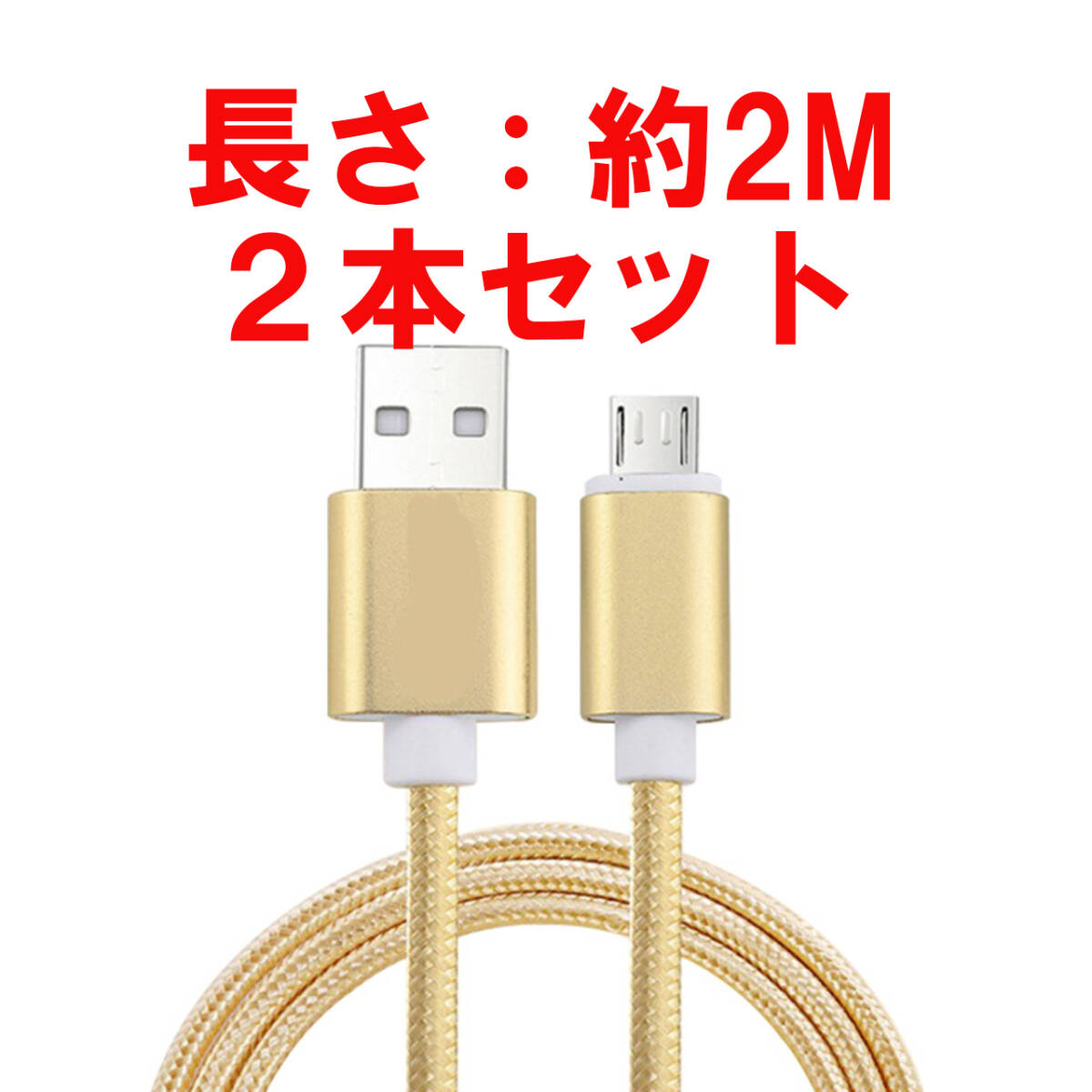 - 2本入り 2M micro USBケーブル マイクロUSB Android 急速充電 モバイルバッテリー スマホ ガラホ充電器 Xperia Galaxy AQUOS ナイロン編み