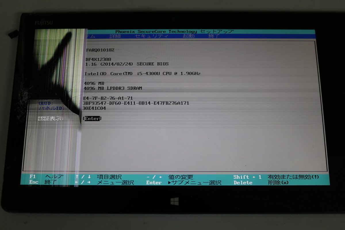 > ジャンク品タブレット 富士通 ARROWS Tab Q704/PV FARQ01018Z i5 メモリ4GB SSD128GB 12.5inch カメラ内蔵 OS無 起動確認済