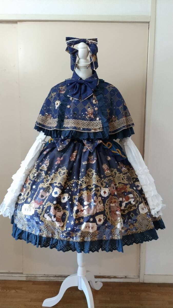 - No.2699_海外ロリィタ_ネイビーくまぬいぐるみ柄3wayワンピフルセット