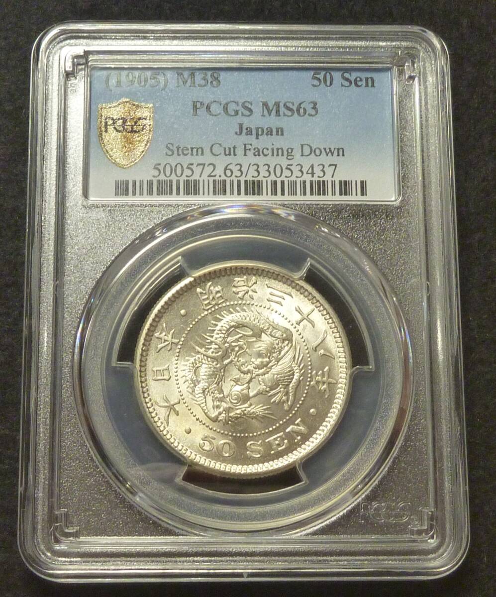 - ☆★竜50銭銀貨 明治38年 PCGS MS63★☆