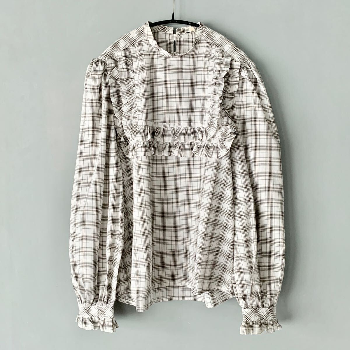 - フランス製 ヴィンテージ フリルブラウス ワークシャツ フレンチワーク vintage french made in france