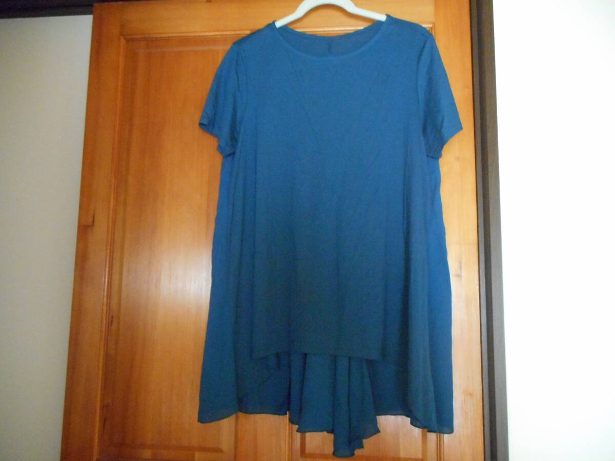 - 半袖 フレア チュニック Lサイズ ブルーグリーン